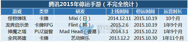 不過,在2015年,騰訊發(fā)行的產(chǎn)品中,據(jù)不完全統(tǒng)計(jì)已出現(xiàn)4款停運(yùn)游戲且集中在10月份。