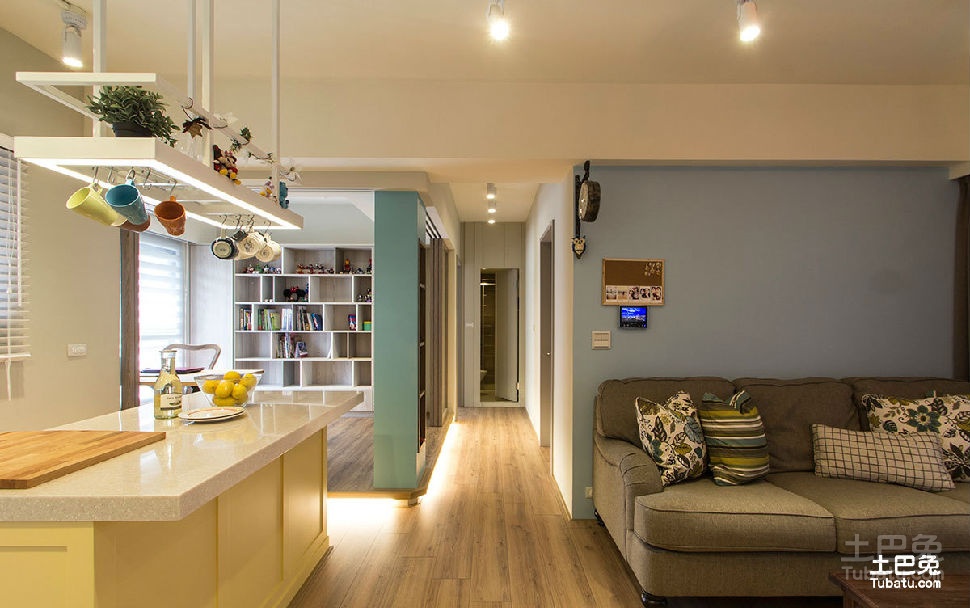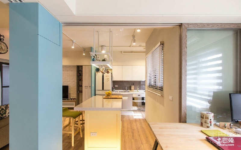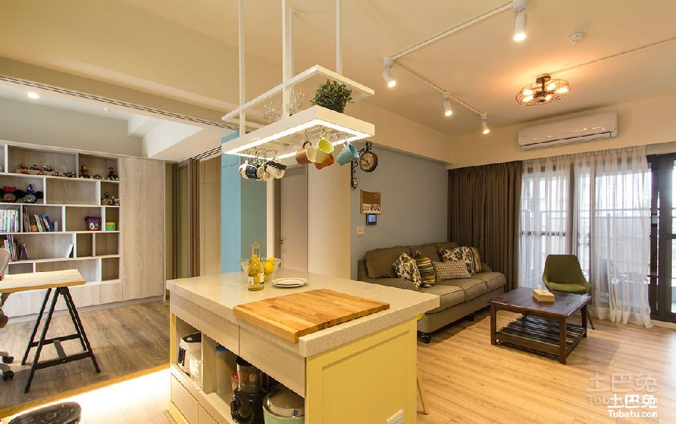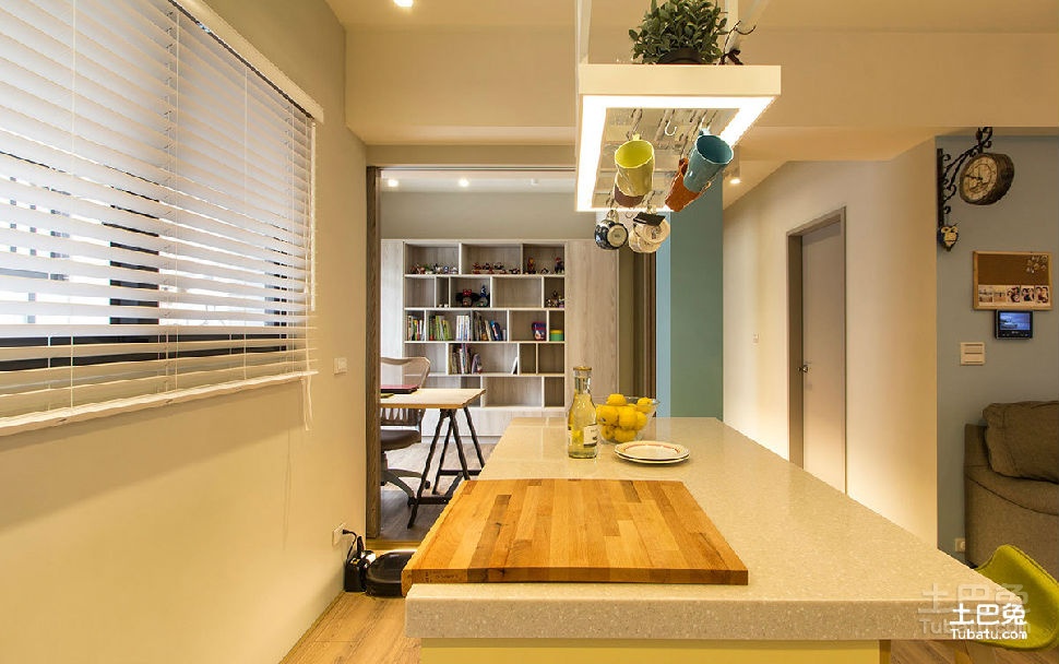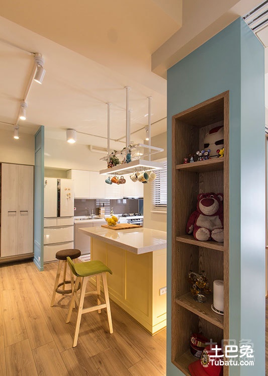 舍棄餐桌的制式配置,以吧臺回應女主人的期望;此外,吧臺漆上檸檬黃呼應整體調(diào)性,下方也納入足量收納,賦予多元的功能性。